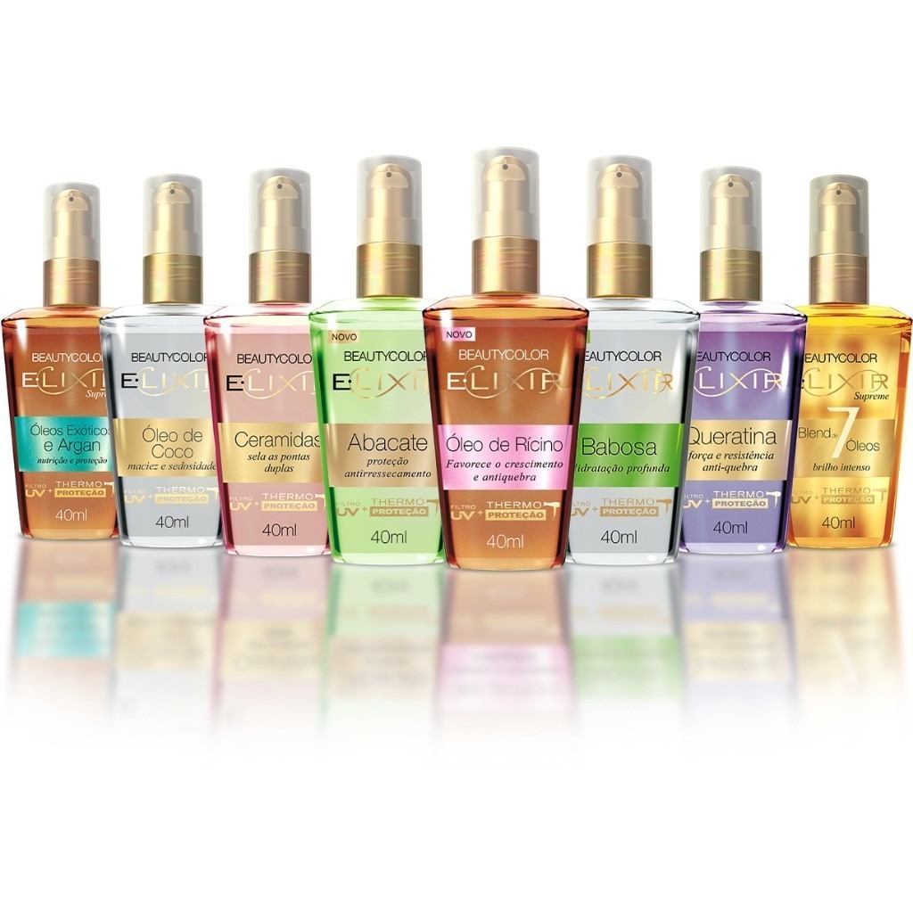 A linha Beauty Color Elixir foi desenvolvida para oferecer tratamento intensivo e multifuncional para todos os tipos de cabelo, combinando óleos nutritivos e ativos reparadores em fórmulas leves e de rápida absorção. Cada versão atende a uma necessidade específica, proporcionando brilho, maciez, força e proteção térmica.
