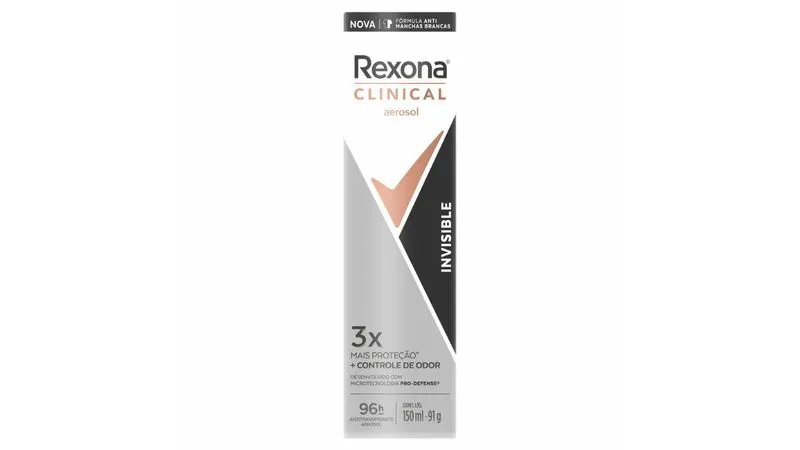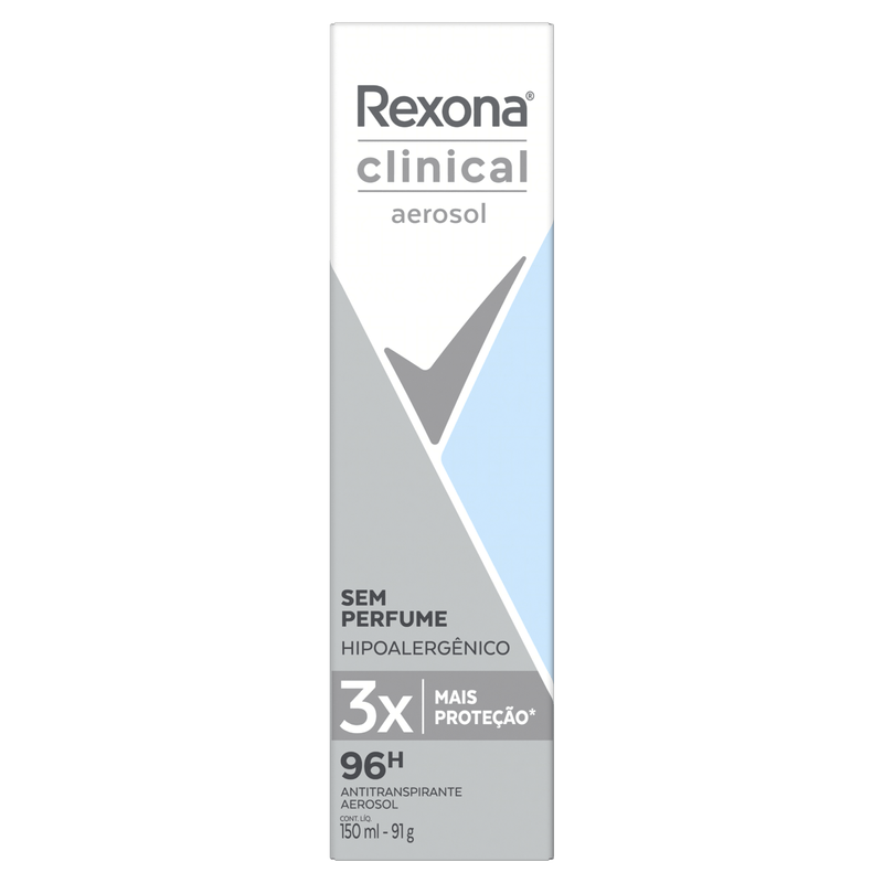 O Rexona Clinical Aerossol foi desenvolvido para oferecer 3 vezes mais proteção contra o suor e o mau odor em comparação com antitranspirantes comuns. Sua fórmula garante até 96 horas de eficácia, com secagem rápida e tecnologia que ajuda a evitar manchas nas roupas.