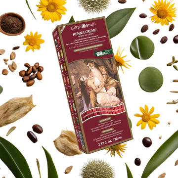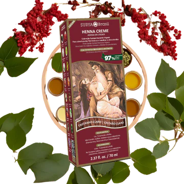 A Henna Creme da Surya Brasil é uma coloração natural e inovadora, desenvolvida para quem deseja realçar a beleza dos cabelos sem abrir mão da saúde e do bem-estar. Sua fórmula exclusiva combina extratos vegetais e ingredientes cuidadosamente selecionados, proporcionando uma experiência de coloração que vai além da cor: trata, hidrata e protege os fios.