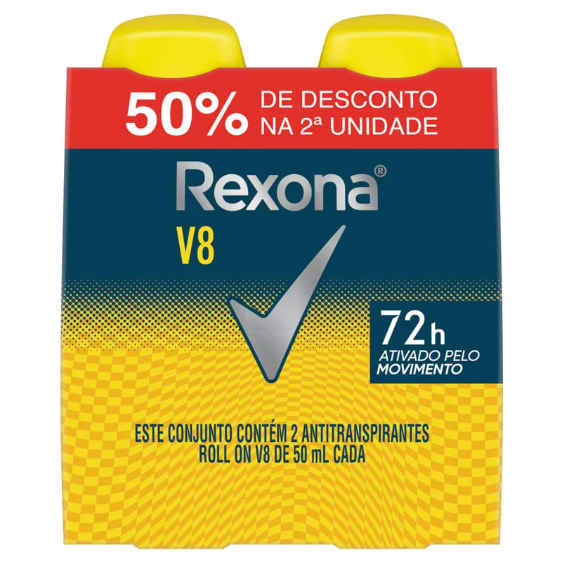 Com o Kit Rexona Roll On V8 & Power Dry, você garante frescor, potência e confiança em dobro.
