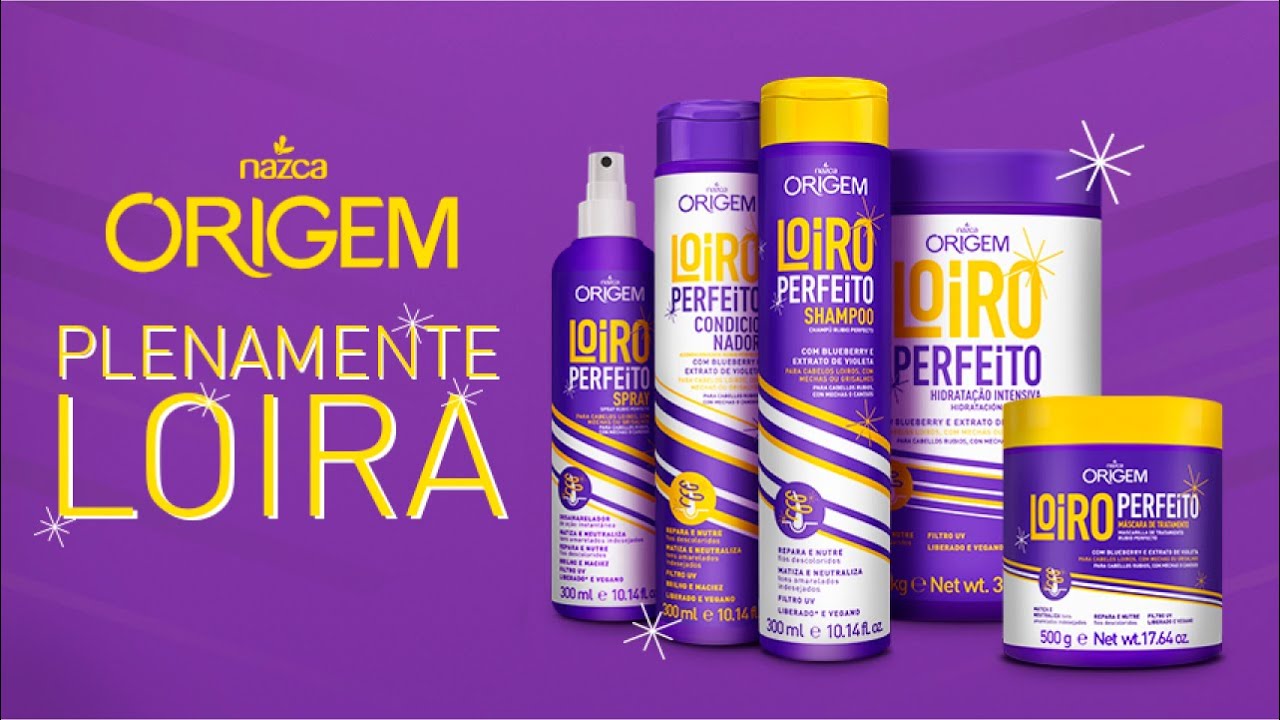 A Linha Loiro Perfeito da Nazca Origem foi desenvolvida especialmente para cabelos loiros, descoloridos ou grisalhos que precisam de cuidados intensivos contra o amarelado indesejado. Com fórmulas matizantes e nutritivas, proporciona brilho, maciez e a tonalidade perfeita para realçar a beleza dos fios claros.